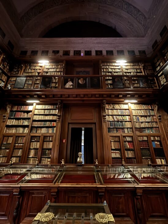 E poi c’è la Biblioteca Ambrosiana, uno dei luoghi più preziosi e meno conosciuti di Milano. Fondata nel 1609, è una delle biblioteche più antiche d’Europa. Gli scaffali sono colmi di volumi antichi, manoscritti medievali, testi rari e documenti che raccontano secoli di sapere.